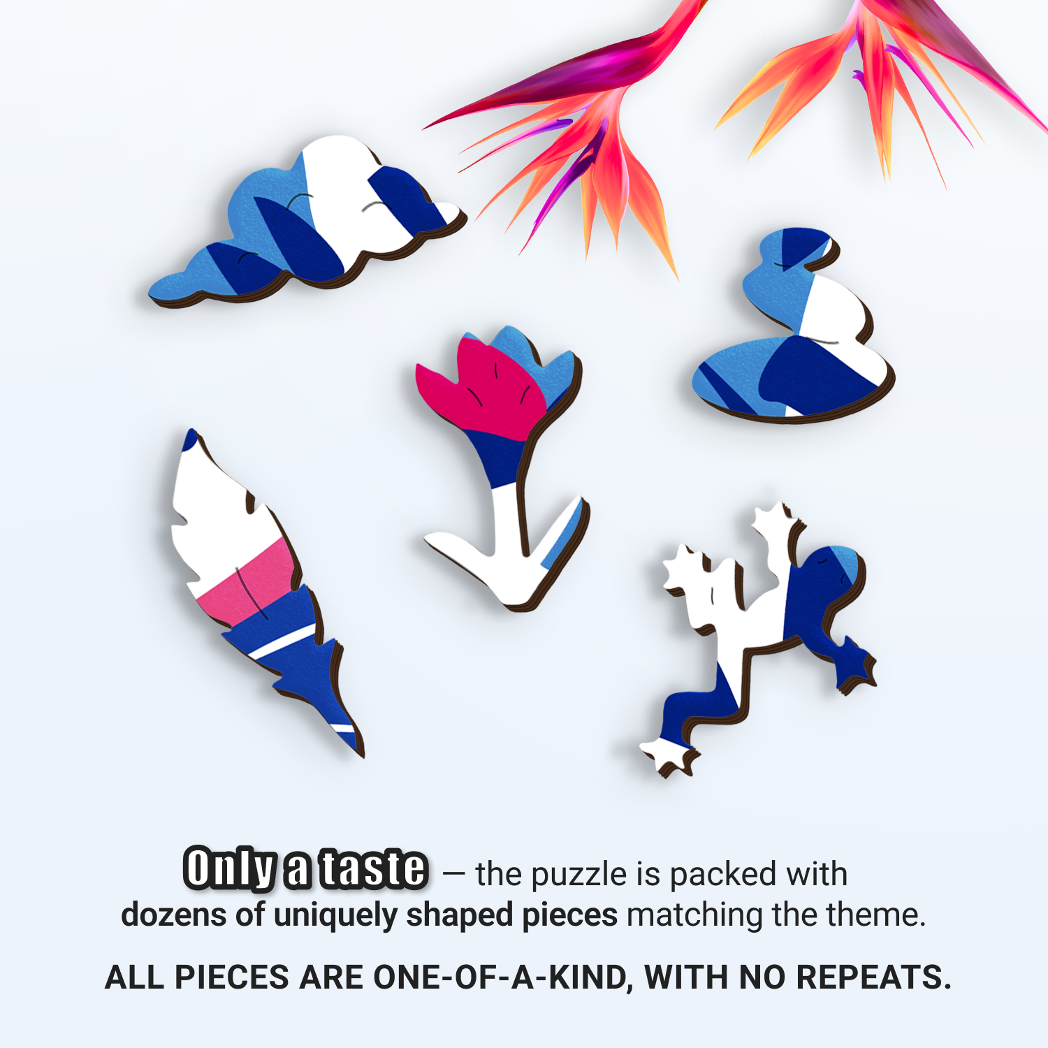 - The puzzle is crafted from durable, premium 5 mm wood with unique, stylish and uniquely shaped pieces.